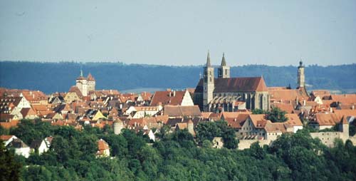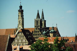Blick von der Stadtmauer zum Rathausturm und Sankt Jakobs-Kirche